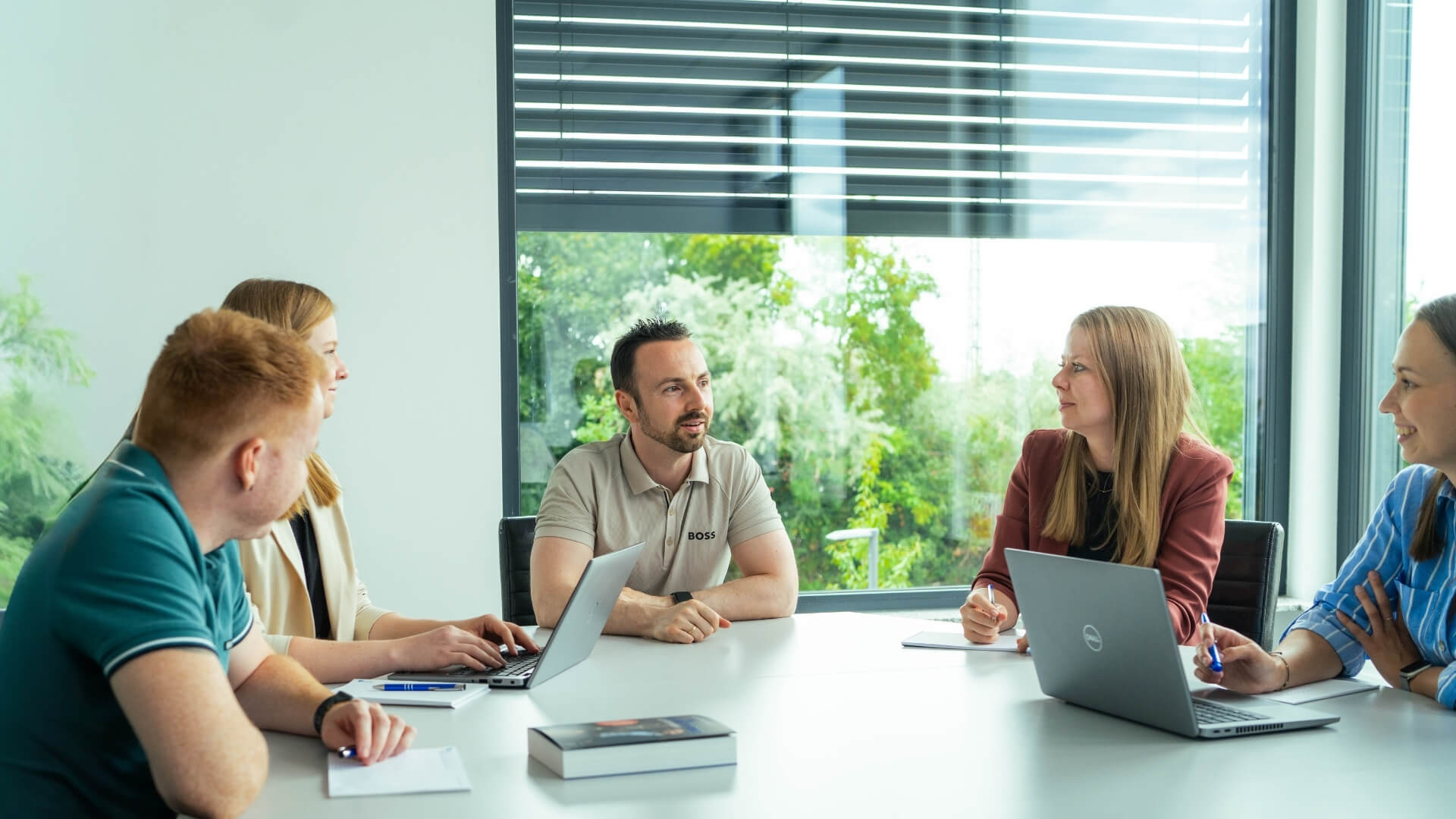 Im letzten Schritt findet ein Vorstellungsgespräch vor Ort in größerer Runde statt. Brillierst du hier, wirst du Teil unseres Teams.